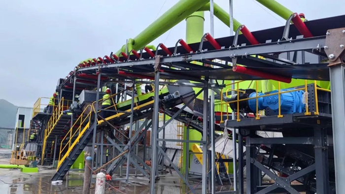 核心設(shè)備:鵝頸式輕型板喂機和中型板喂機,全密封輸送帶,負壓臥式風選機、階梯棒條篩、人工+智能化機器人聯(lián)合分揀平臺、雙軸撕裂機、除鐵器、除塵器等。